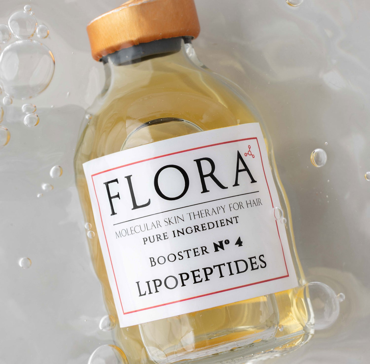 Nos Boosters incarnent l’expertise Flora en technologie moléculaire. Nos thérapeutes capillaires ont choisi des actifs puissants, qu’ils ont isolés et mis en flacon. Ainsi, quelques gouttes de l’ingrédient pur Lipopeptides dans vos soins capillaires suffisent pour personnaliser votre routine en accentuant ses vertus consolidantes et protectrices. Les peptides sont des petites protéines constituées d’acides aminés. En raison de leurs propriétés hydrophiles, les peptides pénètrent très difficilement au cœur du derme : c’est la raison d’être des lipopeptides, renforcés en acide gras assurant cette action profonde. La protéine peut dès lors intervenir au cœur des cellules, stimulant notamment la synthèse du collagène et de l’élastine. Les lipopeptides se sont affirmés comme des incontournables de la dermocosmétique anti-âge, et désormais du hair care.