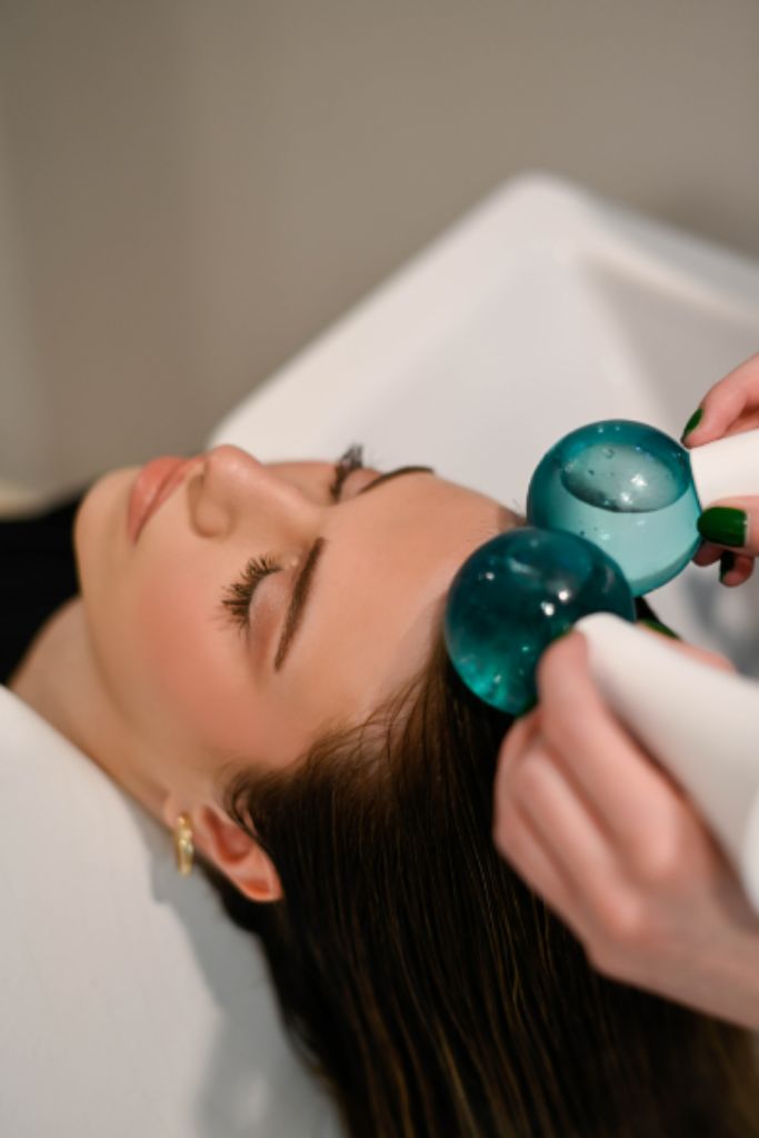 This Head Spa Treatment stimulates collagen synthesis to prevent hair falling and promote hair growth and boosts microcirculation. It soothes itchy scalp and restores strength, hydration, and elasticity. Scalp and hair microbiome is balanced. Hair fiber is stronger, plumped, smooth and shiny. This is our Superpower treatment.